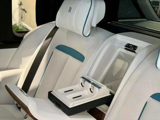 这款车是四座的布局,高级真皮座椅,档次很高,乘坐也非常舒服,后排为独立座椅,可以任意调节座椅角度,让宾客沉浸于身心舒适的享受之中,这里还有劳斯莱斯威士忌酒具、香槟及水晶杯,令您与宾客随时随地沉醉于美酒相伴的缱绻时光。