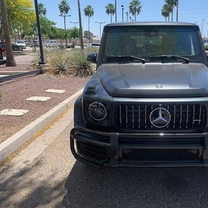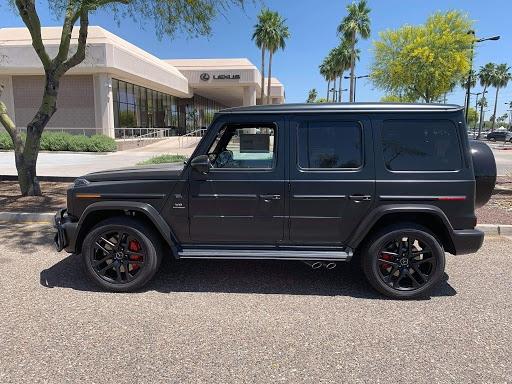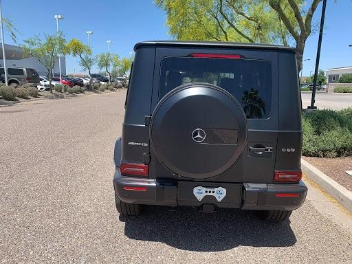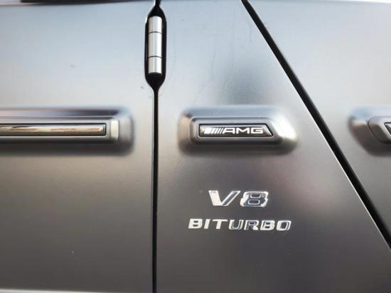 奔驰G63 (配置|询价)进气格栅配三叉星,四支大口径排气管从车身两侧后轮前部的侧裙处探出,再配以AMG传统风格的大尺寸合金轮毂。