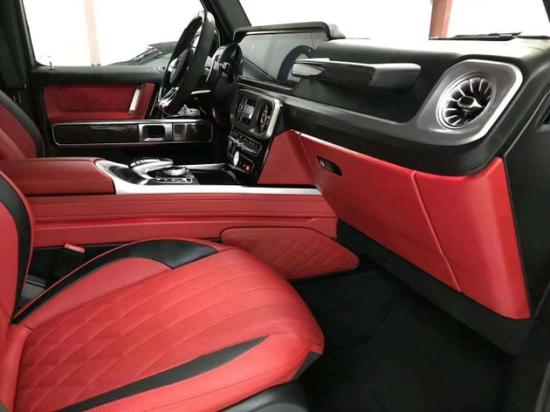 2020款奔驰G63AMG档次、质感和科技配置都明显提升全新奔驰G级的内饰相比老款有了明显的提升,采用了奔驰最新的双屏幕式设计,全液晶仪表盘和中控台屏幕都达到12.3英寸,同时内饰质感和工艺都有了很大的进步。中控涡扇式空调出风口也颇具设计感,车内的高档皮革内饰以及标有V12钻石图案设计的座椅、车门面板和脚垫,无不彰显着车主的尊贵身份。