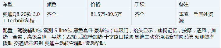 总而言之:20款Q8作为奥迪全新设计语言打造的首款SUV,视觉上能让人赏心悦目,是一款集优雅、动感、科技元素于一体的车型。同时Q8还实现了高效动力与燃油经济性的统一。轻混合动力系统使奥迪Q8的驱动系统十分强劲和高效。