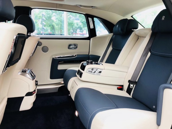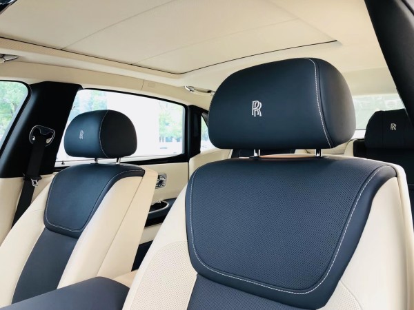 将3.3米的轴距造就了很宽敞的车内空间,后排座椅拥有12向电动调节功能,坐在后排可以像头等舱一样半躺,腰部的座椅靠垫尤其厚实,不会让人有坐进沙发的凹陷感。坐垫较长,对腿部的支撑非常到位,长途行驶也不会觉得累。后排头枕上面也印有双R标识,细节做工非常好。
