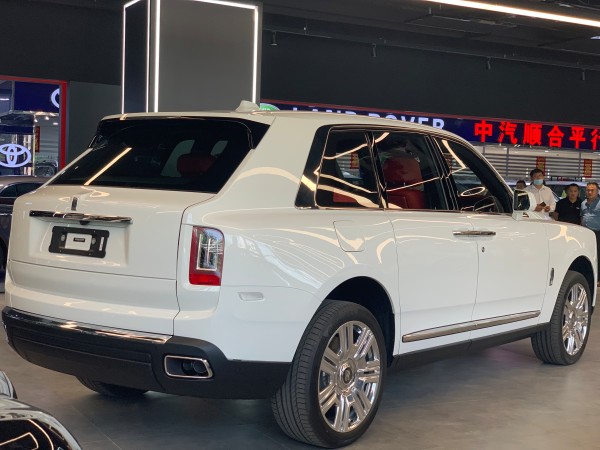 来到侧面,一时,都知道用什么奢华的词语来形容它,劳斯莱斯汽车标志性的长发动机舱盖高于车身侧翼,使劳斯莱斯库里南视觉上更具力量感。早前有朋友谈到和路虎揽胜 (配置|询价)轮廓十分相似,但是到实车面前很难找到相似之处,随着线条迅速上升至A柱,凸显劳斯莱斯库里南1836mm的车身高度。车身侧面从B柱开始,车顶线条就十分流畅,至后风挡时线条走速更快并迅速下落,让行李厢盖都显示出优雅的样子,这一侧面设计是向上世纪三十年代劳斯莱斯汽车设计致敬。据悉新车的整体尺寸为长宽高5341×2164×1836mm,轴距3295mm,整体远大于宾利添越 (配置|询价)与路虎揽胜长轴距版。