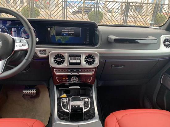 换代的最大最大亮点之一,给人耳目一新的感觉,双12.3英寸液晶通体屏幕外加与奔驰E (配置|询价) COUPE相同的空调出风口设计,让大G的内饰更加豪华,科技感也有所增强。沿用多年的四辐式方向盘也改为三辐式设计,三点以及九点处的多功能按键也与S级 (配置|询价)车型相同,两侧黑色触控按键可以控制仪表盘信息,其中行车电脑和右侧模拟仪表都可以进行切换,可显示油耗、续航里程、车辆状态等信息。在内饰用料方面,奔驰全新G级内部均采用了真皮材质包裹,手感极佳。在副驾驶台上还增加了碳纤维扶手,保护了车内人员在行车时的安全性。