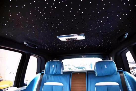 据悉新车的整体尺寸为长宽高5341/2164/1835mm,轴距3295mm,整体远大于宾利添越与路虎揽胜长轴距版,因此乘坐空间方面表现得很不错。后排中央扶手的实木饰板后面设置了两个杯架,可以放置两个香槟杯,整个设计非常有档次感。前排中央扶手内则设置了一个小冰箱,内部空间比较大,可以放置一瓶香槟和两个酒杯。