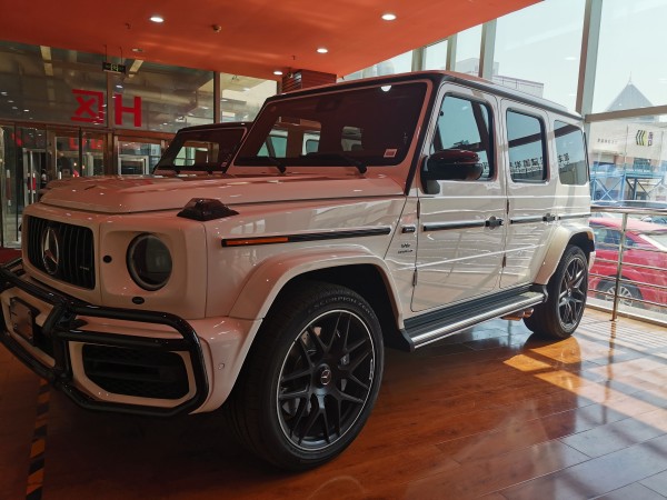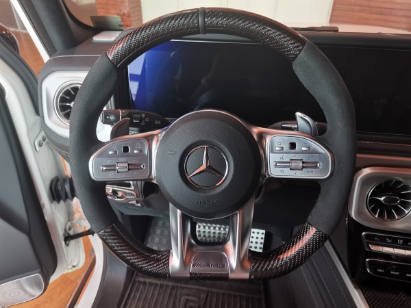 2020款奔驰G63 (配置|询价)美规白/黑单选22暗夜轮毂,碳纤维内饰,碳纤维方向盘,方向盘加热,纳帕多轮廓座椅。