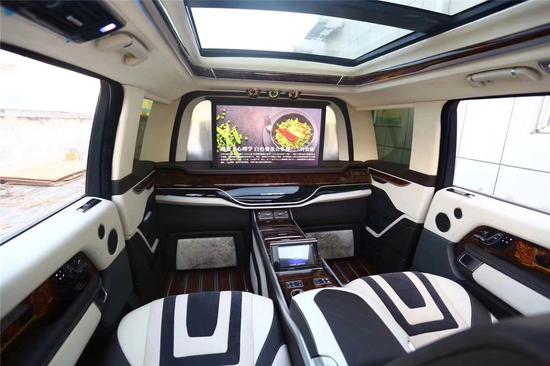 路虎皇家一号座椅真皮包覆打造出极其典雅精致豪华的感觉,三段式的沙发带通风加热按摩功能,腿托展开超长的腿部空间让您尽情的舒展,享受奢华舒适贵宾待遇。整车长宽高(mm)达到了5998*2073*1840,最小离地间隙达到了302mm,绝对是同级别中出色的数据。所幸仍旧在 C1本的驾驶范围内,老板们自己就可以随时开出去爽一把。