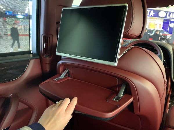 来到后排,奢华的工艺依旧逐一体现,宽大的座椅舒适性表现如前排一样优越。空间方面给人的直观感受就是“够用”!添越的长*宽*高为5141*1998*1742mm,轴距2992mm,定位属于中大型SUV。座椅调节功能与前排保持一致。后排两块10.2英寸的液晶显示屏,分辨率极高,画质清晰。