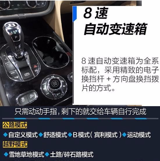 启动键被集成在驾驶模式旋钮上,相比需要稍稍欠身去按的传统位置,这里更顺手些。随着对环保的重视,就连这种超豪华座驾也配备了启停系统,以达到节省燃油的目的。来自采埃孚的8速变速箱表现堪称完美,强大的扭矩并没有给它带来压力,换挡如丝般顺滑。