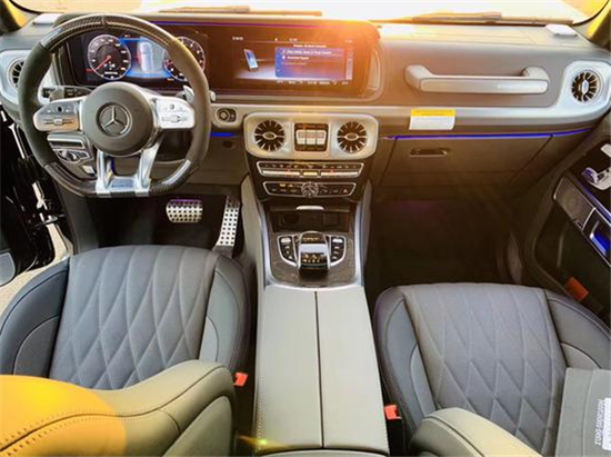 2020款奔驰G 63内饰设计:档次、质感和科技配置都明显的得到了提升。全新奔驰G 63的内饰相比老款有了明显的提升,采用了奔驰最新的双屏式设计,全液晶仪表盘和中控台屏幕都达到12.3英寸,专属的Nappa真皮内饰,质感和工艺都有了很大的进步。