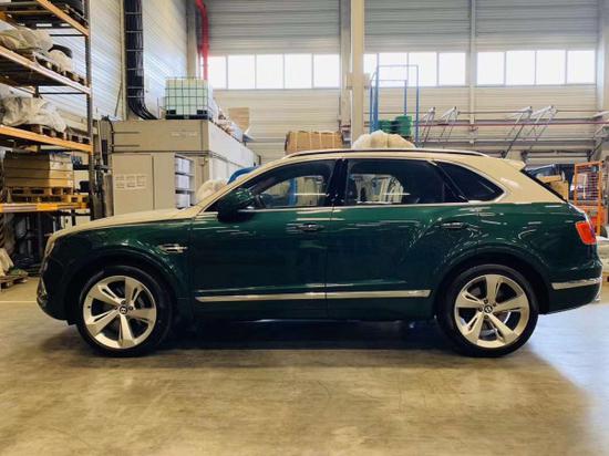 绿色宾利添越,绝无仅有现车手续齐2020款宾利添越 4.0汽油V8 配置:香槟金配绿宝石板球红 主要选配:Mulliner量身定制双色外漆、22寸5幅定向铝合金喷漆轮、后座娱乐系统,旅游配置(自适应巡航控制系统、宾利安全配置PLUS、抬显、夜视功能、车道辅助功能、交通辅助功能)、宾利动态驾驶系统、四座舒适座椅配置并配有后中控台,前座椅背木饰小餐桌,镀络进气格栅及前防撞格栅, 同色车身、经典提琴木饰,遮阳帘。