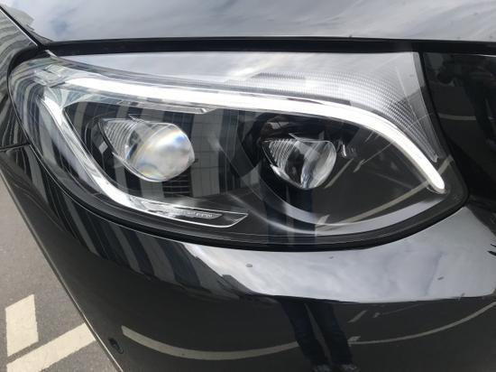 墨版奔驰GLC300前脸采用家族式设计,其中又吸取了C级轿车的设计元素,保险杠下方两侧的网状进气口成封闭状,仅起到装饰作用。格栅采用镂空双幅式设计,配合中网造型显得很大气。大灯方面,新车标配为氙气大灯,在高配车型上则配备LED大灯。
