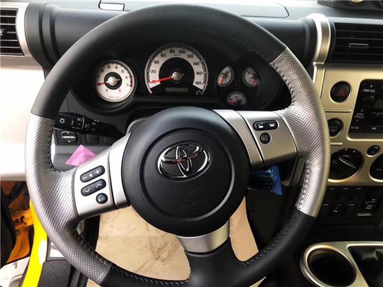 19款丰田FJ酷路泽的内饰与其外观相一致,同样洋溢着时尚与运动的气息。仪表板采用简单而有力的直线条,粗壮的水平线条和垂直线条相交,形成了平面与弧线融合的美感立体效果,给人一种时尚而粗犷的感觉。此外,19款丰田FJ酷路泽所配备的各种现代而先进的装置也显得灵活奔放而个性十足。方向盘集合了音量开关、搜索开关、模式开关等按键以及定速巡航控制系统控制杆,操作十分方便,在一味追求粗犷的同级别车型中特别少见。