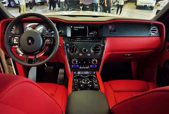 劳斯莱斯库里南的内饰遵循了劳斯莱斯一贯的设计风格,造型经典复古但不失科技感,大量实木饰板的采用,提升了内饰的档次感。而大面积真皮包裹的设计,则成功的营造出奢华舒适的内饰氛围。现车三种颜色的内饰设计,使整车奢华优雅又不失灵动的气氛,也体现了设计师的独具匠心。