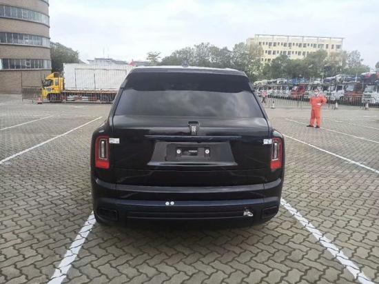 库里南区别于其他在售的劳斯莱斯车型,新车的进气格栅向上向前推高,让劳斯莱斯车标和欢庆女神傲然伫立于车头,王者风范十足,没毛病。在帕特农神庙式进气格栅和“眉”形日间行车灯上方,另外一条横向的线条贯穿,使得整个前脸庄重威严感十足。而BB版的欢庆女神是限量黑色。