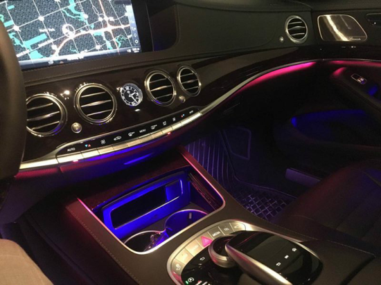 面对竞争对手推出的“体感互动娱乐系统”(按照提示用身体各部位挤压座椅并达到一定力度和时间,身体就能恢复活力),奔驰的解决方案似乎更加符合常理。在今年的上海CED展上一款基于迈巴赫S级轿车打造的Fit & Healthy智能健康概念车力求通过数据分析为用户带来更舒适的车内环境和身心健康解决方案。新S级配备的“畅心醒神”功能则是其落地的结果。该功能通过预设的放松、提神、温暖、活力、愉悦和舒适六种模式,整合了空调(气温和香薰)、座椅(温度和按摩)、环境光甚至多媒体系统,在十分钟里让乘坐者达到身心的愉悦。这让我联想到了787梦想客机上按照不同飞行时段的不同对于光线、温度和气味的整合管理,主动为乘客营造环境相比让乘客挤压座椅似乎更加人性化。值得一提的是,新S级的氛围灯颜色由过去的7种升级为64种,同时提供了10种预设的颜色搭配,乘客还能根据个人喜好在不同位置自定义不同的颜色显示。