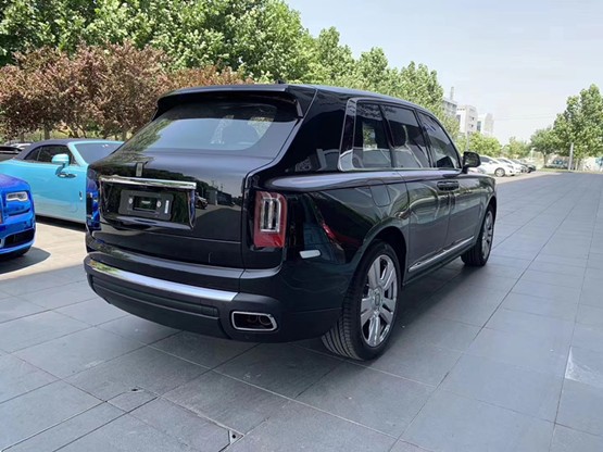 劳斯莱斯库里南车顶线条就十分流畅,至后风挡时线条走速更快并迅速下落,让行李厢盖都显示出优雅的样子,这一侧面设计是向上世纪三十年代劳斯莱斯汽车设计致敬。据悉库里南新车的整体尺寸为长宽高5341×2164×1836mm,轴距3295mm,整体远大于宾利添越 (配置|询价)与路虎揽胜 (配置|询价)长轴距版。劳斯莱斯库里南车尾部分设计则较为简约,并没有采用过于华丽的装饰。金属排气管和防撞击滑板的采用,宣示着库里南不仅仅追求设计上的奢华,动力与性能同样是它所注重的。