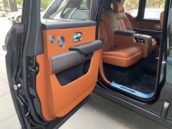 劳斯莱斯库里南内饰大量实木饰板的采用,提升了内饰的档次感。而大面积真皮包裹的设计,则成功的营造出奢华舒适的内饰氛围。仪表盘的设计较为古朴,内部指针清晰可见,外圈还配备有劳斯莱斯珠宝般的装饰环。方向盘沿用了经典的三辐式造型,但是整体设计更加小巧、厚实,并且内部包裹有可加热的柔软材质。