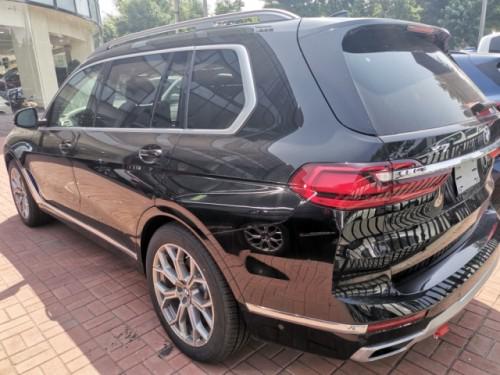 20款宝马X7车身侧面上方配有行李架,前翼子板下方为长条状空气导流槽,腰线较为低矮且呈上扬之势,选用21英寸双五辐式拼色轮毂。车尾造型方正,LED尾灯组与粗壮的银色饰条贯穿相连,采用上下分段式电动尾门,排气采用双边共四出式布局,保险杠下方两侧配有大尺寸镀铬尾喉装饰。