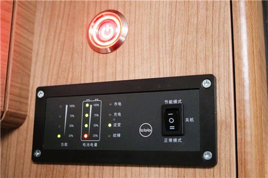 最后来跟大家说一下这款房车在电气系统上的配备,这款房车提供了3000W纯正弦波充逆变一体机、250W太阳能电池板、2*120Ah生活区蓄电池组等。