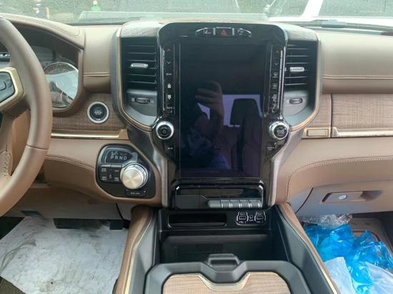 20款道奇公羊1500长角号在内部设计上还是延续了美式那种比较粗犷的风格,规整的中控台设计看上去比较板,但丰富的配置会让你不由得为其称赞。中控台的设计简洁硬派,符合公羊的气质;做工则完全摆脱了美式的粗糙感,边缘、接缝都处理的很精细。仪表盘底边有花纹,则更加凸显了这款车的文雅性。软性材质的仪表台设计,摸上去手感非常舒服,并无些许生硬之处。