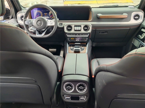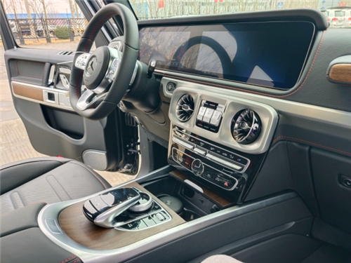 2020款奔驰G500内饰豪华气派,卓越的品质和精致的工艺在车内体现得淋漓尽致,对细节的精益求精是内饰设计中的重要原则。车内采用深色调与桃木装饰,黑色真皮运动座椅非常舒适,方向盘以高档真皮包裹装饰,触感极其细腻。配有桃木装饰的操控台,稳重大气,同时提高了整体的质感。各种功能按钮应有尽有,丝毫不次于豪华轿车的功能。 内饰焕然一新,虽然还是以直的线条为主,但完全没 了上一代车型那种粗糙的感觉了,用料和做工都能令人满意。跟奔驰的很多其他车型一样,它也用上了双12.3英寸屏幕,科技感很强。