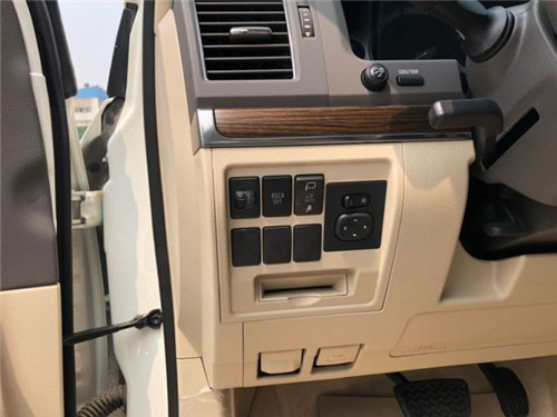 丰田酷路泽5700整个操控区域色调为深色系,仪表盘、方向盘和排挡等位置均配以桃木装点,尽显豪华质感。不但具有DVD导航,这款车的倒车影像还可以显示在内后视镜上;中央扶手箱还装备了冷藏箱,这些都与中规版车型有所不同。