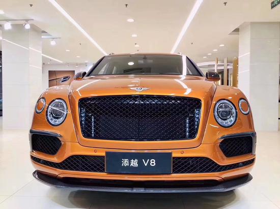 添越V8唯美系列特别版以添越V8车型为设计灵感,在英国克鲁工厂以精湛手工技艺匠造而成,进一步彰显出添越车系富有雕塑感的外观设计和运动风范。添越V8唯美系列特别版标配添越黑色配置(Bentayga Blackline),采用与车身同色的前保险杠下裙板和引人瞩目的亮黑色双边排气尾管设计,实现V8车型富有感染力的排气声浪。