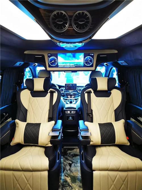 奔驰V (配置|询价)260的座椅采用2+2+3的七座布局,中间二排座椅可以根据乘客自身的需求来做出相应的调节。任何一款车无论它的配置多么丰富、用料多么讲究,最终性价比的评定还是要看其售价,今天我们体验的这辆V260L尊贵加长版在空间、配置、内饰氛围上都表现出了很强的吸引力,再加上60万出头的售价,一下子让它表现出了很高的性价比。