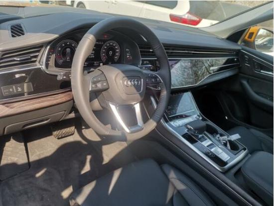 进入车厢内部,会感觉奥迪Q8和全新A8 (配置|询价)的设计高度雷同。奥迪全新家族化设计,科技感十足的虚拟驾驶舱氛围,同样的三块大屏,横向贯穿的前排空调出风口。中控台采用大面积的真皮包覆,且向驾驶员一侧倾斜,形成以驾驶员为中心的驾驶舱。