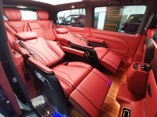 本改装厂主营改装项目一览表:航空座椅、三连座沙发、柚木地板、全隔断、带升降电视、半隔断吧台、吧台隐藏座椅、电动中门、电动尾门、导航、桃木方向盘、方向真皮包、覆仪表台真皮包覆、驾驶座真皮包覆、驾驶座电动调节、驾驶座电动加热、驾驶座电动通风、驾驶座电动按摩、驾驶座气动按摩、驾驶座加棉、驾驶舱鹿皮顶、后舱鹿皮顶、后舱星空顶、九宫格顶灯、ABCD柱鹿皮包覆、遮阳板鹿皮包覆、驾驶位门板真皮包覆、中门门板真皮包覆、后尾门门板真皮包覆、全车侧壁真皮包覆、全车私密手动窗帘、迎宾踏板、主副驾驶中央扶手箱、主副驾驶扶手带冰箱、吸顶电视、主副驾驶靠背小桌板、可拆卸小桌板车、内氛围灯、吊顶、其他。