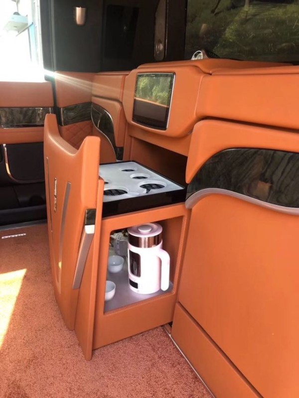 全车VIP大包围,车顶升高,22寸轮毂,电动踏板,多功能方向盘,40寸曲屏电视 4K高清电视,梦幻星光顶,气氛灯,分隔舱,7寸智能电容中央控制触摸屏,控制车内灯光、后仓《林肯原厂座椅开关控制》 总统席商务座椅22向调节(带通风加热按摩 、舒适腿托、肩部调节)后排扶手隐藏折叠小桌板,美国锐威revel搭配意大利歌剧世家HI-FI发烧音响,小米智能电视盒,支持WI-FI上网,支持高清电影播放,高端树脂、实木、印花地板,电动私密窗帘,高级隐藏秘书座椅后仓隐藏防盗密码箱,后尾门防撞防弹,全车林肯原厂水转印桃木升级,天窗, 隐藏商用小桌板。