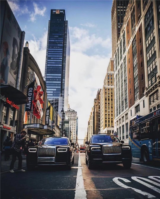 库里南区别于其他在售的劳斯莱斯车型,新车的进气格栅向上向前推高,让劳斯莱斯车标和欢庆女神傲然伫立于车头,王者风范十足,没毛病。在帕特农神庙式进气格栅和“眉”形日间行车灯上方,另外一条横向的线条贯穿,使得整个前脸庄重威严感十足。也只有这些词适合来形容它。