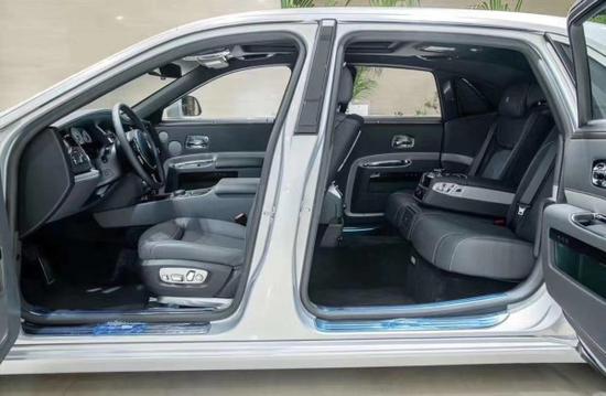 劳斯莱斯古思特 (配置|询价)加长版车身与车轮高度2:1的比例,平直高耸的腰线,让整车侧面看上去无比尊贵,看上去给人一种无比尊贵的视觉享受。经典的对开门设计,采用一对向后开的后门,内部可以舒适的容纳五名成年乘客。该车的内装非常简洁,控制键的数量大幅减少,重要的功能键表面都采用镀铬装饰以起到提升作用。