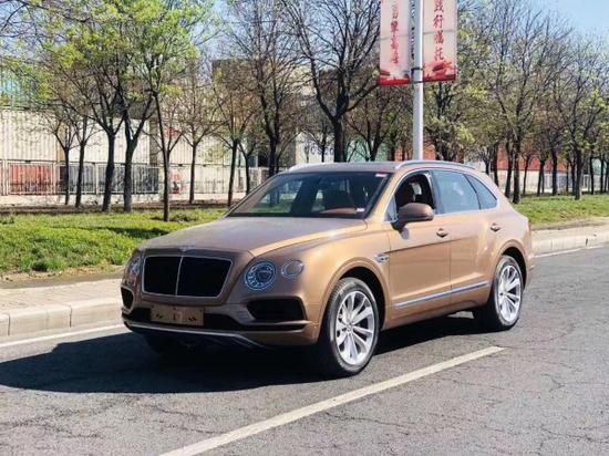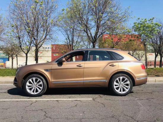 20款宾利添越V8欧规 五座车架号:7879颜色:古铜色/棕状态:天津现车标配:氙灯LED大灯雾灯日间行车灯、百年灵时钟、全景天窗、智能卡、电吸门、电尾门、车顶行李架、前后电眼、倒车影像、三幅真皮运动方向盘、前后座椅加热、全时四驱、可变悬架系统、6个气 、底盘升降、巡航定速、胎压监测、上下坡辅助、盲点监测、换档拨片、前大灯清洗系统、自动四区空调、前真皮电动记忆加热腰腿支撑座椅、电动防眩记忆加热折叠后视镜、导航、金属漆选配配置: 舒适包:前排座椅通风加热按摩百年包:车前盖徽章,车尾徽章,轮毂中央徽章,方向盘徽章,档把徽章,车钥匙徽章都以百年典藏金配色,迎宾踏板以日期(1919-2019)刻字,MUI Iiner 专属迎宾灯,百年典藏座椅对比色缝线,座椅金色十字缝线,百年典藏金色刺绣徽章,脚感电尾门同色车身,宾利刺绣,方向盘加热,泊车钥匙,前挡风玻璃加热。