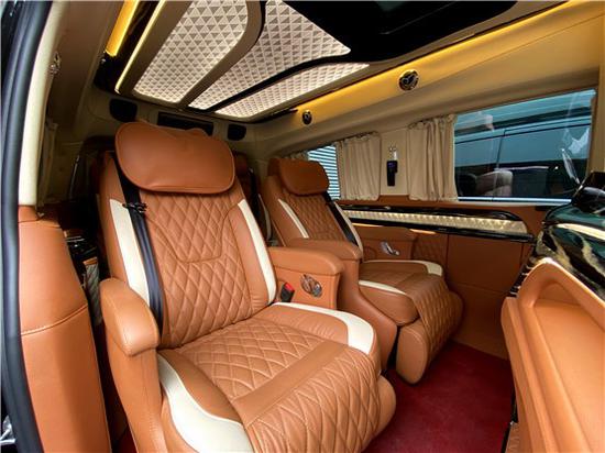 既然豪华感已经得到这么大的提升,那么车内的座椅就不能还是原来的原装座椅了,直接奔驰御用的头等舱座椅安排上,按摩加热,座椅通风,航空头等舱座椅有什么功能,这款奔驰威霆上全都有。