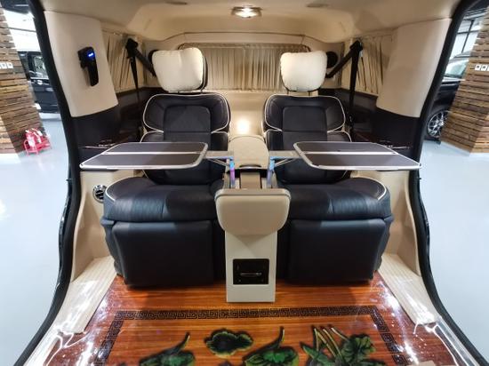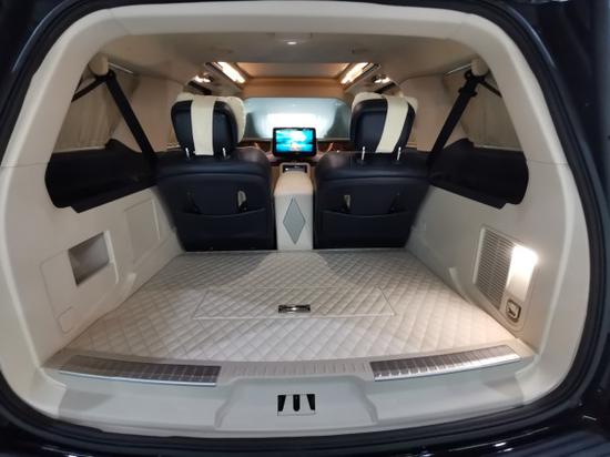 林肯领袖一号共有6个座位,前端是两个折叠式座椅,也称为秘书座,后排座椅是主座,它带有电加热,通风和按摩功能,最大程度还可以放平休息,出远门时候,它是最适合的,累了可以按摩,渴了可以烧水喝,无聊可以看看新闻和上上网。