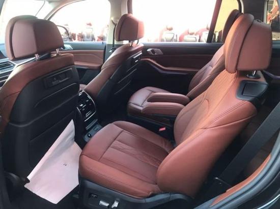 三排座椅布局你需要关注的是什么——座椅or空间,这两点只要能够做好,宝马X7作为一台全尺寸SUV就已经合格了70%。七座版车型的第二排座椅为三座长椅,车内是标准的2+3+2空间布局。至于乘坐空间上的表现你丝毫不用担心,仅就第二排和第三排的空间来说,无论是六座版还是七座版的第三排乘坐感受都完全能够接受。而乘坐感受在天窗与三角侧窗的帮助下,也绝不压抑。
