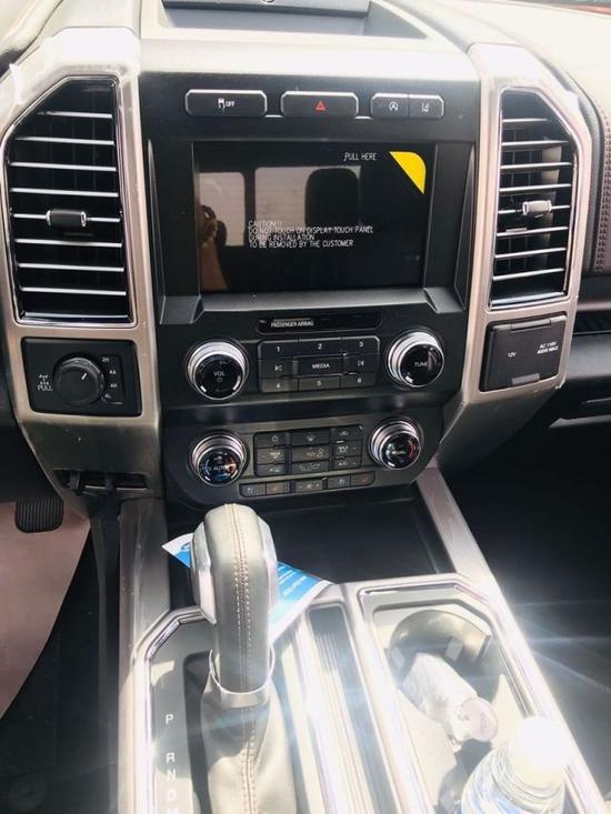福特F150车内配备标准独特的皮革和布艺装饰的座椅,驾驶员侧的电动十向调节。这些座椅同时具备记忆功能。中央控制区搭配了触控式显示屏,其下方则是多媒体控制区及空调面板,采用旋钮+物理按键的组合。中控功能区域可分为三个小控制区,最上端为音响控制及导航控制,中间为收音机调节控制,最低端为空调及座椅加热控制。