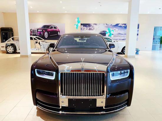 劳斯莱斯幻影加长版,4门4座版本 6.7T,V12,571匹马力,8速手自一体,双涡轮增压,长*宽*高5990*2018*1656,轴距3772,时下最流行的爱马仕橘色缝线搭配曜石黑内饰,绝无仅有的搭配。通过对铝的完美使用,庞大的车身控制在2745KG重,并采用全新的N74B68A双涡轮增压6.7T V12发动机,最大功率420KW,在1700转下就可以发挥最大扭矩900NM,与八速手自一体变速箱的的通力合作,使新幻影0-100Km/h的加速仅为5.4秒。