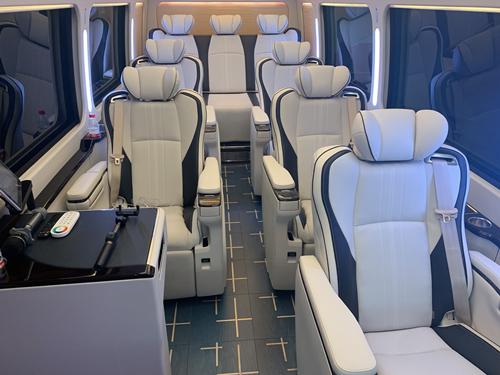 20款丰田柯斯达(考斯特)改装商务车充分注重商务车的适用范围,在内饰的设计上以大方高贵为主,360度可旋转首长席方便在乘车过程中的临时会议,大家可以调转座椅的角度,方便大家更好交流。