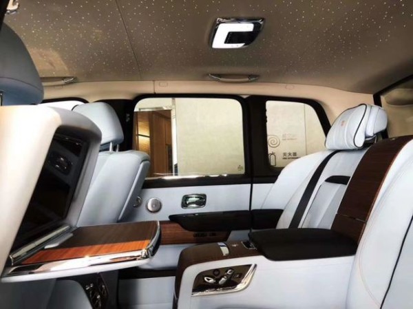 在侧面,金黄色的腰线在凸显着这款车的尊贵,全新22英寸的双五辐花瓣式轮圈配合前所未有的红色刹车卡钳,官方旨在进一步表达着叛逆和颠覆。劳斯莱斯对这款车的悬架也进行了升级,提升它的动态响应,激情不能仅限于外观,还要真正融合到这款车的骨子里。