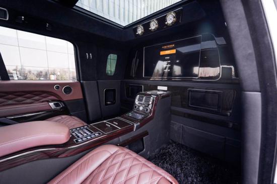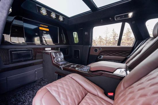 路虎揽胜皇家一号配备了BOSE5.1殿堂级影院系统,喝酒K歌绝对毫无压力。后排配备有鞋托,车内底板全部为豪华游艇木装饰。由于是4座的设计,所以说后备箱腾出了比较大的空间,说到底,路虎揽胜皇家一号,还是一个豪华商务越野车。