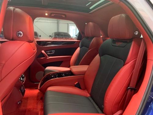 宾利添越内部设计沿袭了传统的豪华风格,全新的三辐式方向盘、大尺寸液晶显示屏和全新的 电子换挡杆也为新车增提了一丝科技感。新车内饰整体采用真皮进行包裹,并辅以木纹饰板和部分镀铬装饰件进行 搭配,视觉效果彰显奢华。
