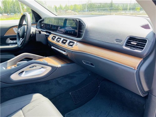 2020款奔驰GLS450内饰可选高等真皮以及实木-真皮组合,包括桉木内饰、纵纹轻铝制内饰以及棕色岑木内饰板,三辐式真皮方向盘上布置了12个控制按钮,8英寸中控屏和支持多点触控的手写触摸板构建起奔驰最新信息、娱乐、互联系统的控制中心。奔驰GLS450实木装饰在告诉你它的定位和身份。