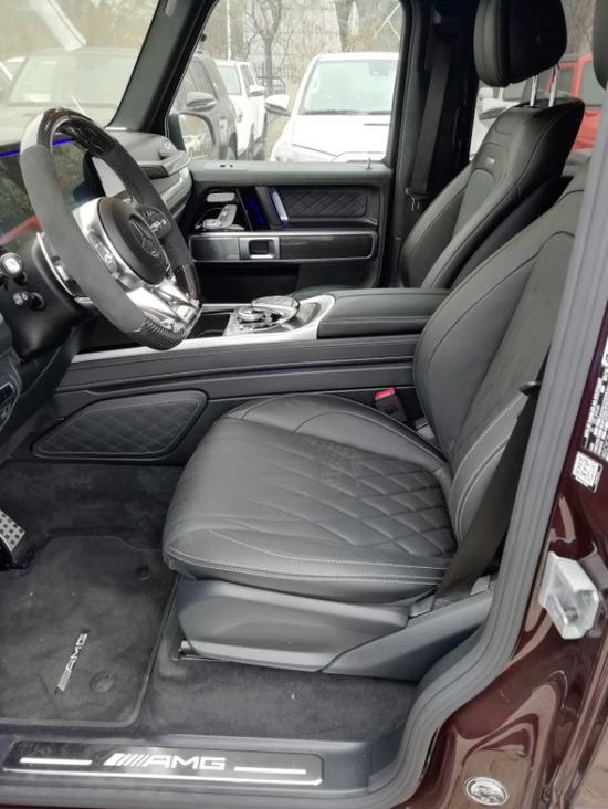 2020款奔驰G (配置|询价)63无论是轰鸣的排气声浪,还是枪栓般的车门上锁声音都会令人心旌摇荡。初次接触G63的车迷需要一段时间来适应它的坐姿和乎垂直的挡风玻璃,而一旦熟悉之后,你就会彻底沦陷于它宽大的座椅中。豪华精致的真皮包覆提供了足够的舒适性和支撑性,通风和加热功能让乘客免受高温和寒冷的煎熬。中控台多处均采用碳纤维材料覆盖,带彩色TFT显示屏的仪表盘、主菜单和单独的挡位显示器以及采用白色照明的门槛。名贵的选材及精湛的内装令人拍案叫绝。