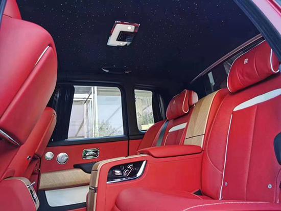 劳斯莱斯库里南尾门采用双段式开启,消费者可选装劳斯莱斯首创的揽景坐席,在点击一键开启后两张皮质座椅与鸡尾酒桌便会从行李箱暗格中升起。两张座椅均采用真皮包裹,触感细腻。同时,座椅和鸡尾酒桌都支持折叠,这样的设计使得行李厢内部空间不会被过度侵占。矩形尾灯组颇具新意,内部还加入了直立的细灯条,点亮后视觉效果极佳。