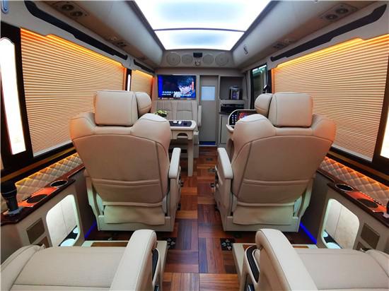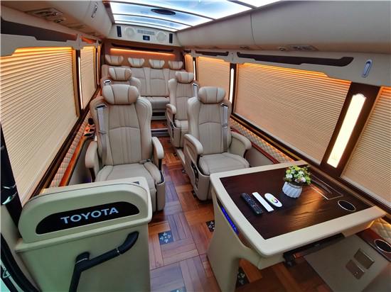 丰田考斯特内饰中还可以有餐具厨房,简单大方的设计,高贵优雅的空间,在那样一个7米长的车内,却显示出了与众不同的的风味。洗手间或者置物柜,凤凰田考斯特改装商务车在内饰的设计上,为我们营造了加的温馨。生活不仅仅只有物质,我们还有精神的享受,丰田考斯特改装还可以改装成移动的酒吧,移动的KTV,丰田考斯特改装商务车内饰的灯光设计也是丰田考斯特改装上的可圈可点之处。