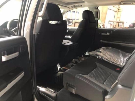 20款丰田坦途TRD版皮卡中控台科技感十足,三辐方向盘延续了家族设计理念。金属、木材、皮革等多材料营造了相当豪华的视觉感受,丰田坦途内饰简洁大方依旧突出了实用特点,室内色彩的精致搭配,让整个内部空间既充满质感又倍感时尚。