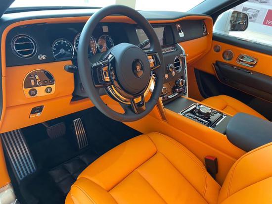 库里南的内饰延续了全新幻影的设计风格,整体用料依旧一如既往的奢华高贵,中控采用大面积实木打造,配合方向盘上的实木点缀,既复古又豪华。中控屏幕尺寸为10.2英寸的屏幕,轻触车门把手上按键就可以电动关闭。游艇式方向盘采用了相同的搭配风格,全液晶仪表盘采用三圆仪表设计,辅以虚拟表盘和指针,兼具现代化的科技感和典雅的复古风格。
