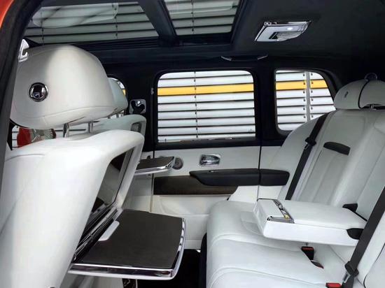 配置:首发包:环绕座椅加热, Cullinan亮牌,车架号铭牌,座椅头枕劳斯莱斯标,带颜色座椅嵌边,带颜色缝合线,后桌板,表盘,羊皮脚垫,侧门发亮cullinan标,劳斯莱斯订做音响,驾驶辅助包,后娱乐。